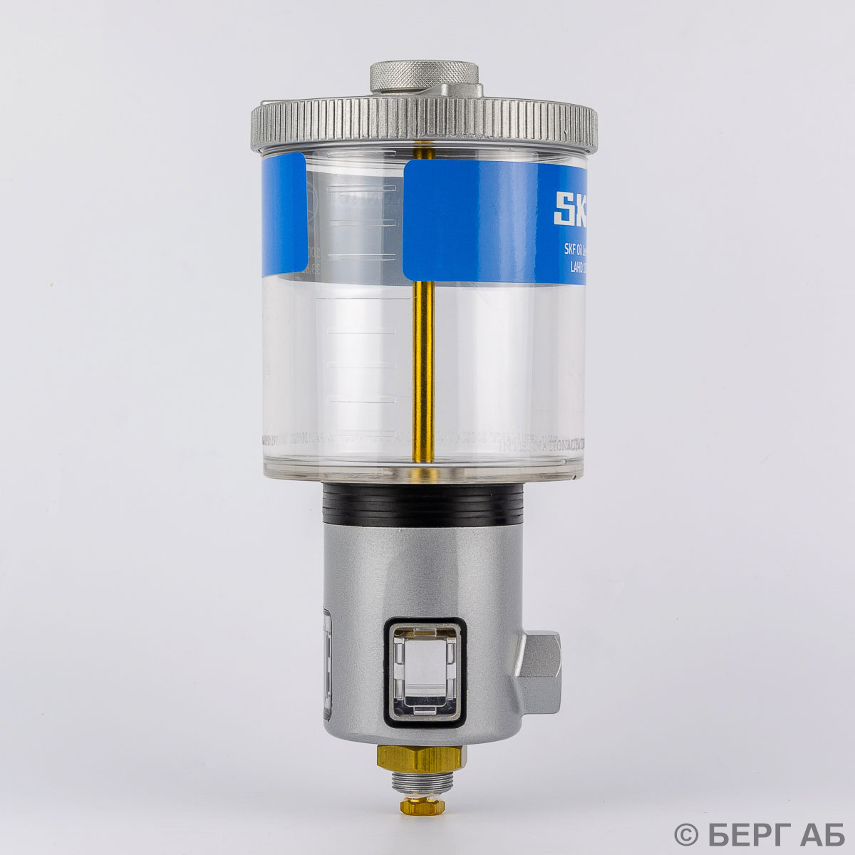 Регулятор уровня масла SKF состоит из двух сообщающихся масляных резервуаров. Нижний резервуар установлен непосредственно на смазываемом механизме и имеет тот же уровень масла, что и смазываемый узел. Через вентиляционное отверстие он взаимодействует с окружающим воздухом.